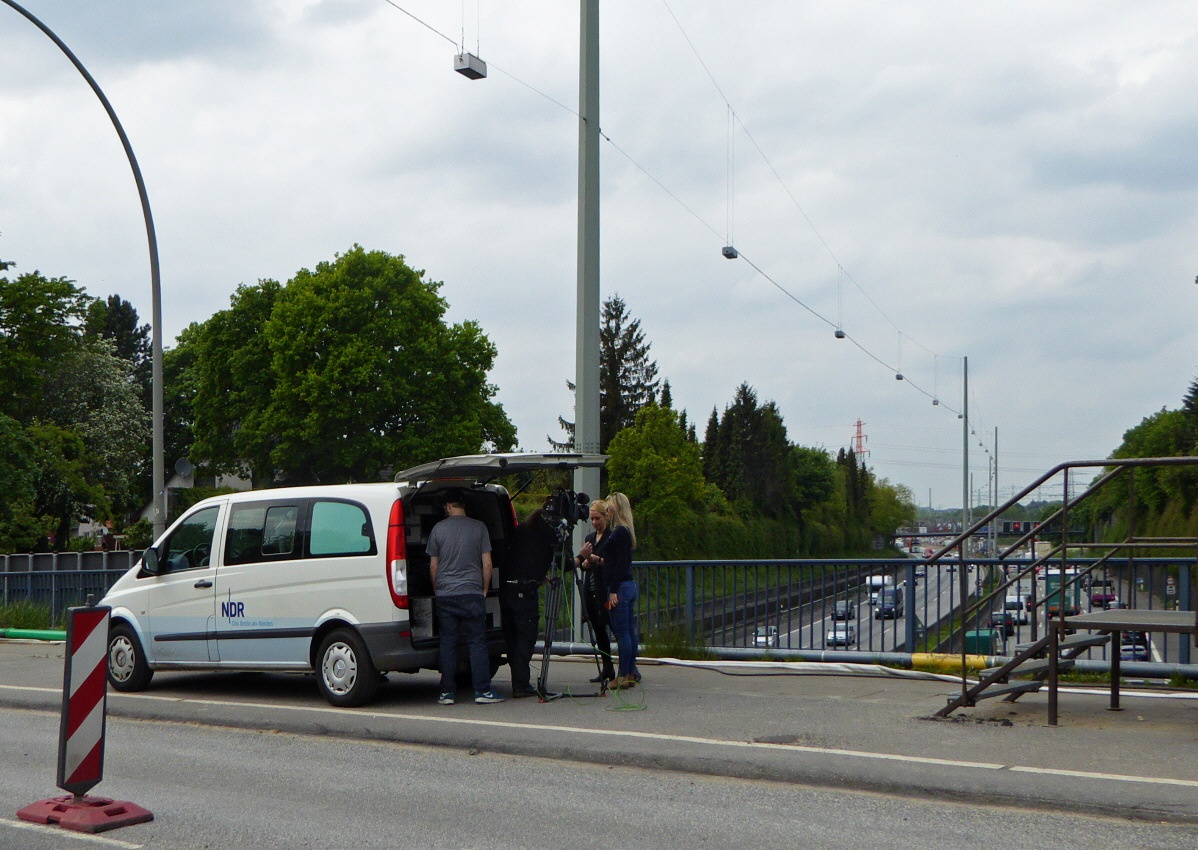 Ein NDR - Übertragungswagen auf der A7- Brücke des Wördemanns Wegs in Stellingen